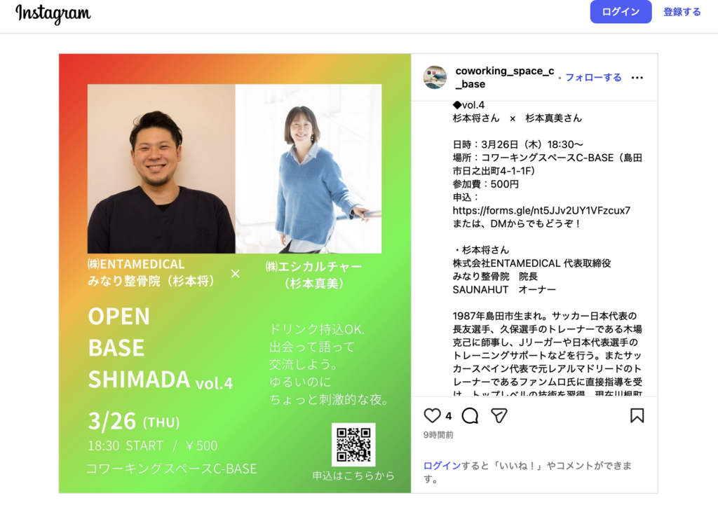 3/26(木)に開催される【OPEN BASE SHIMADA vol.4】に代表の杉本が登壇します。